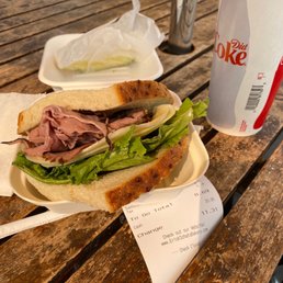 My first time trying this place. This place excited me so much as they offer so many different kinds of breads and sweets. We ended up purchasing a couple loaves and beef jerky to take home. I also tried their sandwiches. The bread does make a difference ! Very busy place but well worth the stop if you are in town.